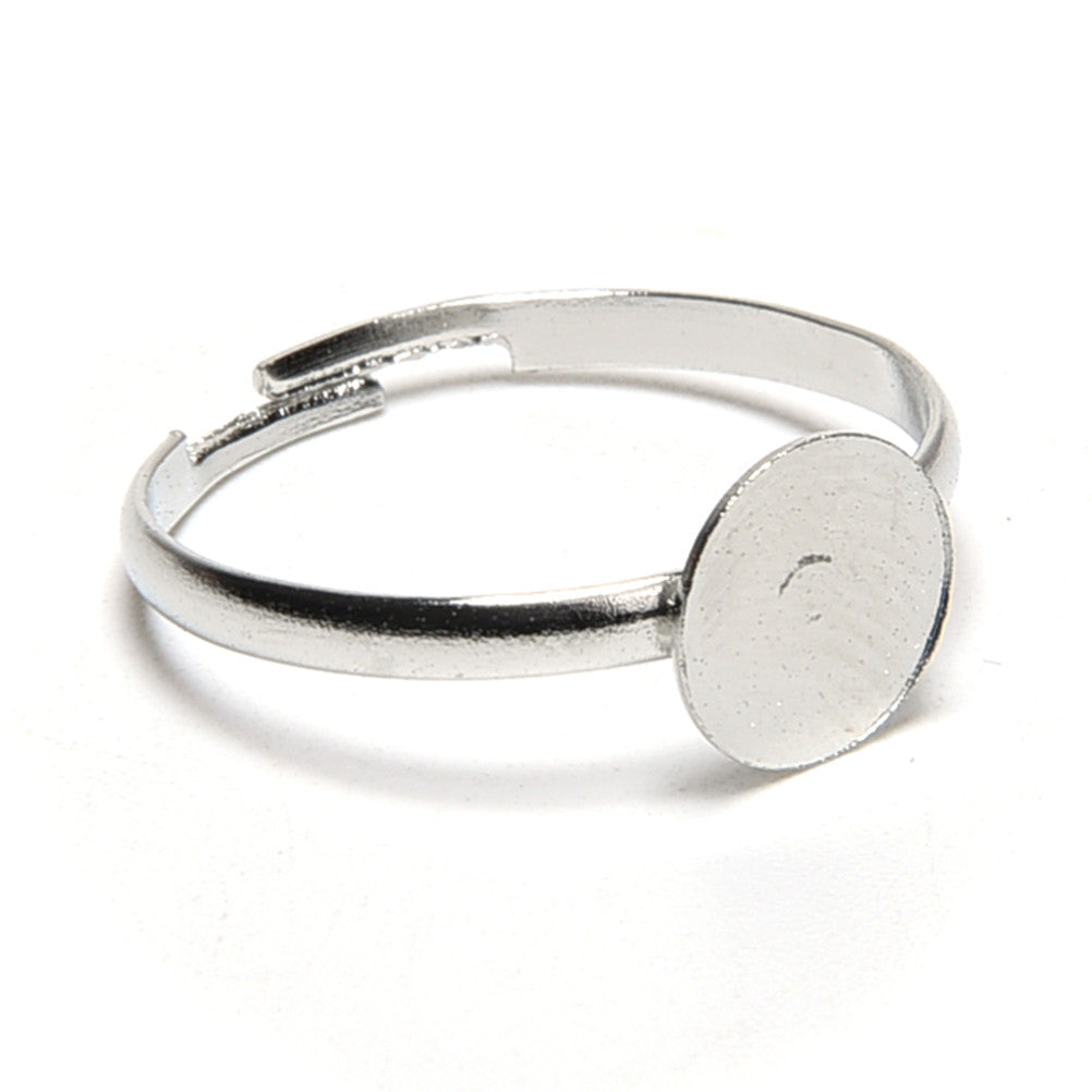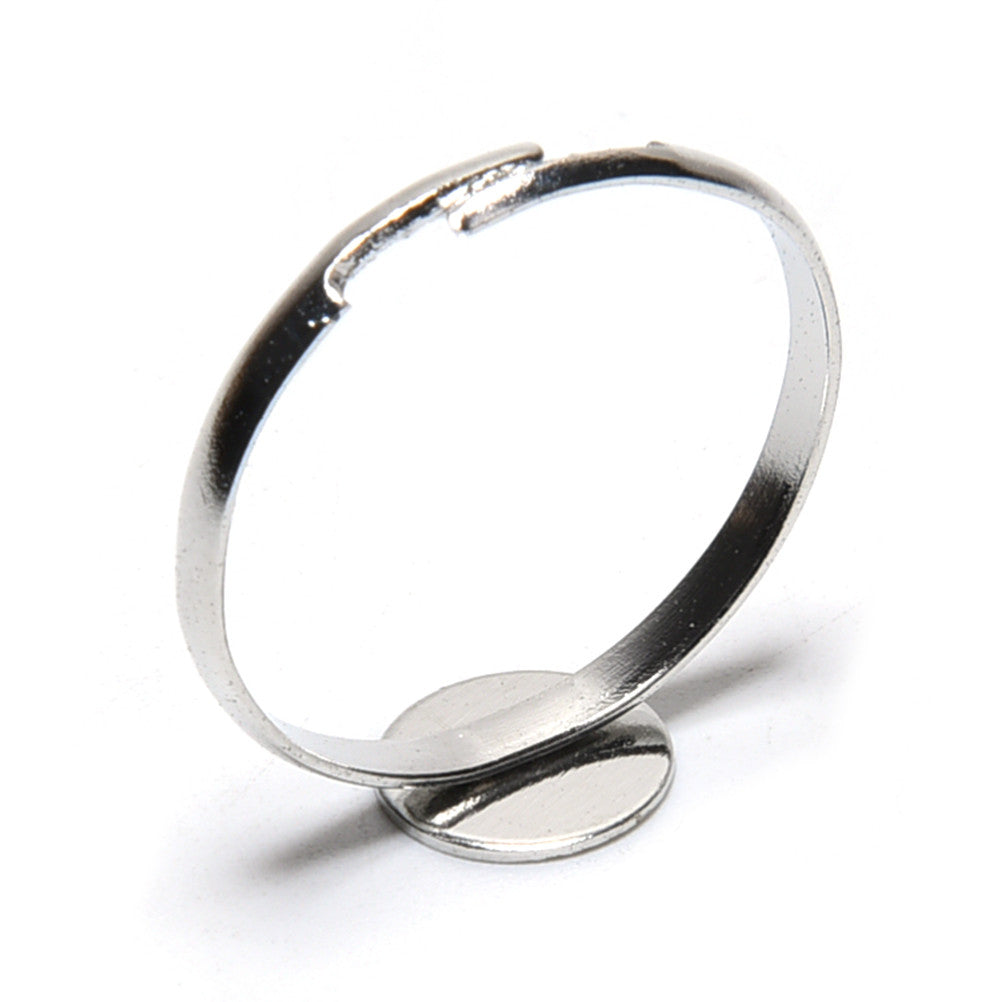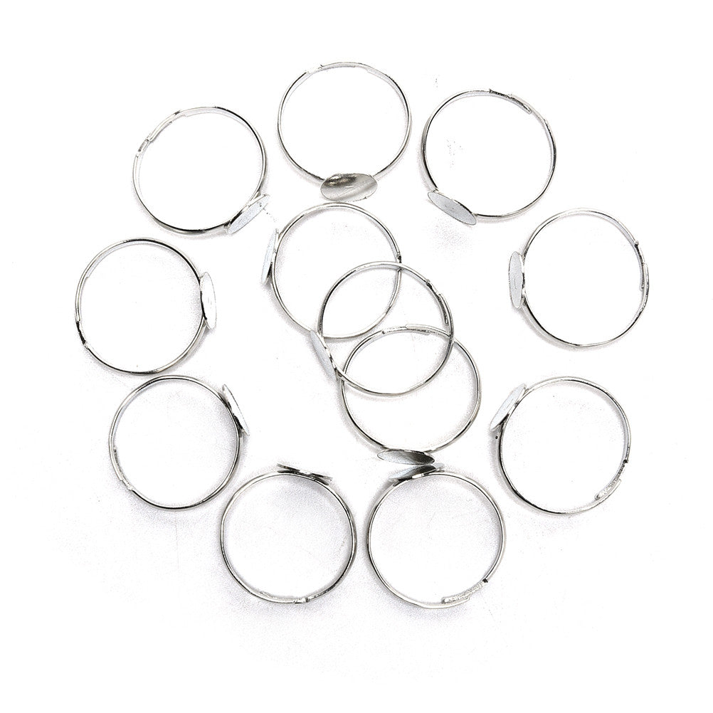 10PCS Dia 8mm Adjustable Silver Plated Flat Ring jewelry Findings Pad Bases Blanks Accessories EF8