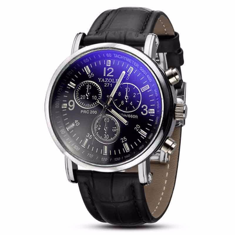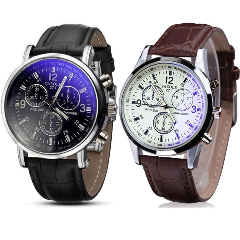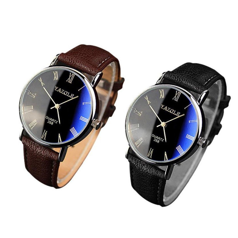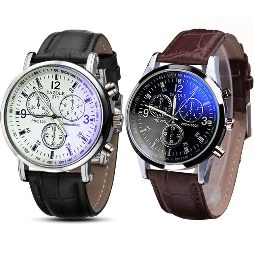 2pc Luxury Fashion Faux Leather Mens Blue Ray Glass Quartz Analog Watches Quartz-watch Relogio Masculino Feminino Montre EF8