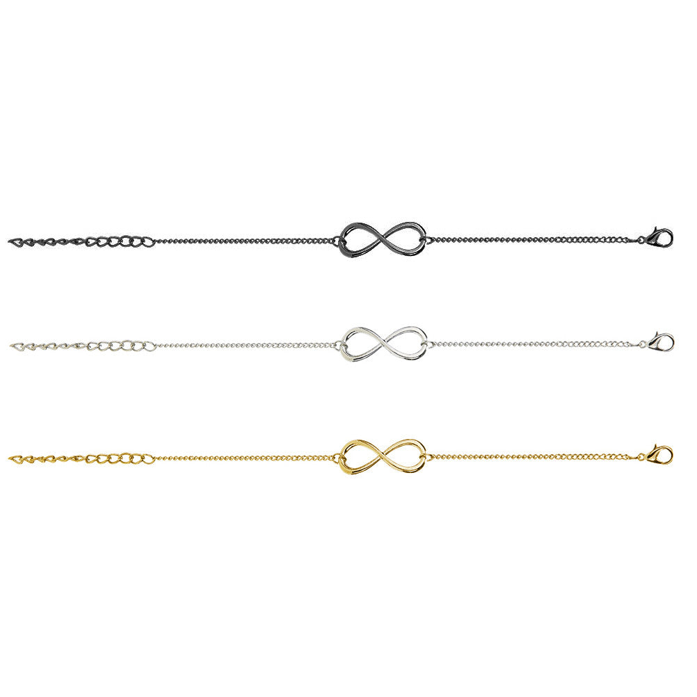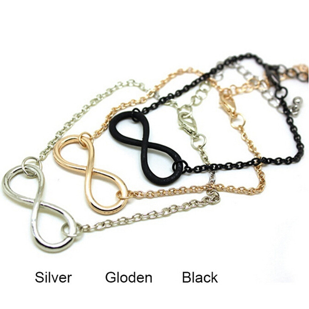 3 Colour Popular Gold Silver Black Cross Infinity Chain Bracelets Bangles Jewelry For Women EF8