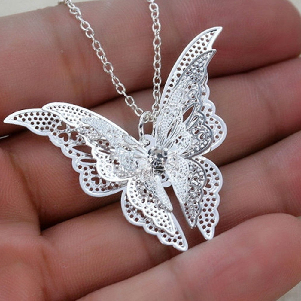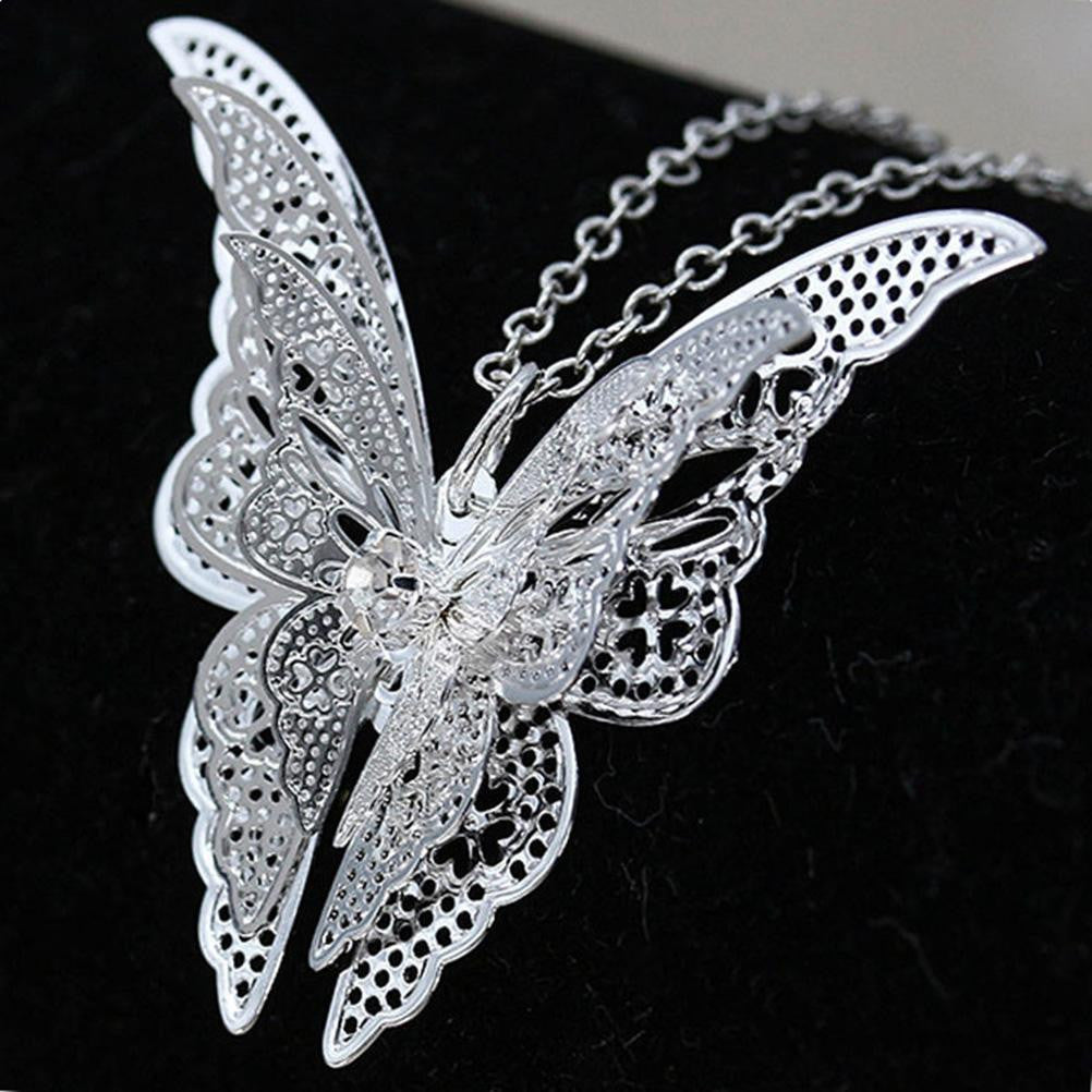 3 Layer 3D Crystal Rhinestone Silver Plated Butterfly Long Necklaces Sweater Pendants Collars Jewelry EF8