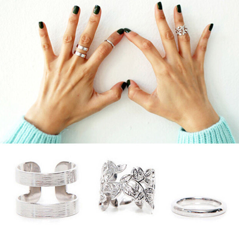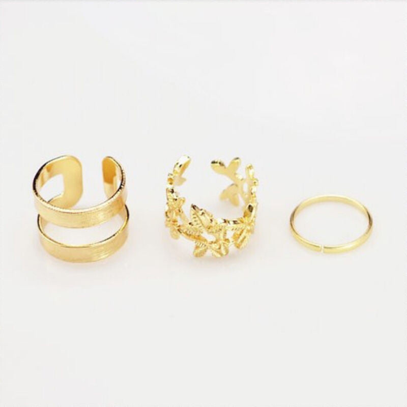 3pcs lot Punk Metal Gold Silver Leaf Rings For Women Hollow Out Leave B Midi Finger Knuckle Ring Set EF8