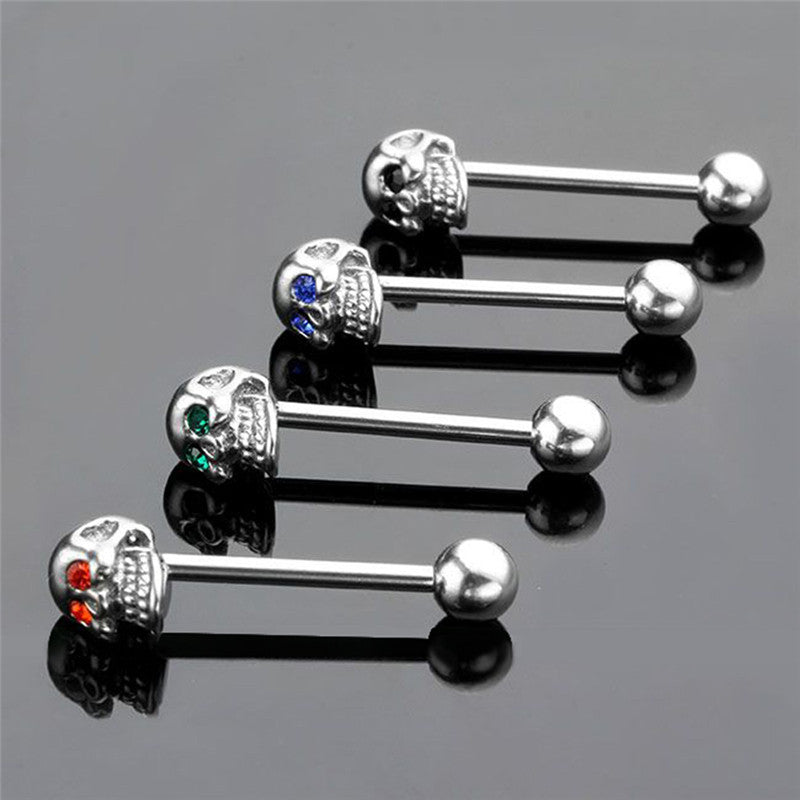 4Pcs 316L Stainless Steel CZ Gem Punk Skull Tongue Ring Barbell Piercing Body Jewelry EF8