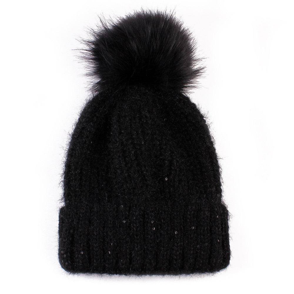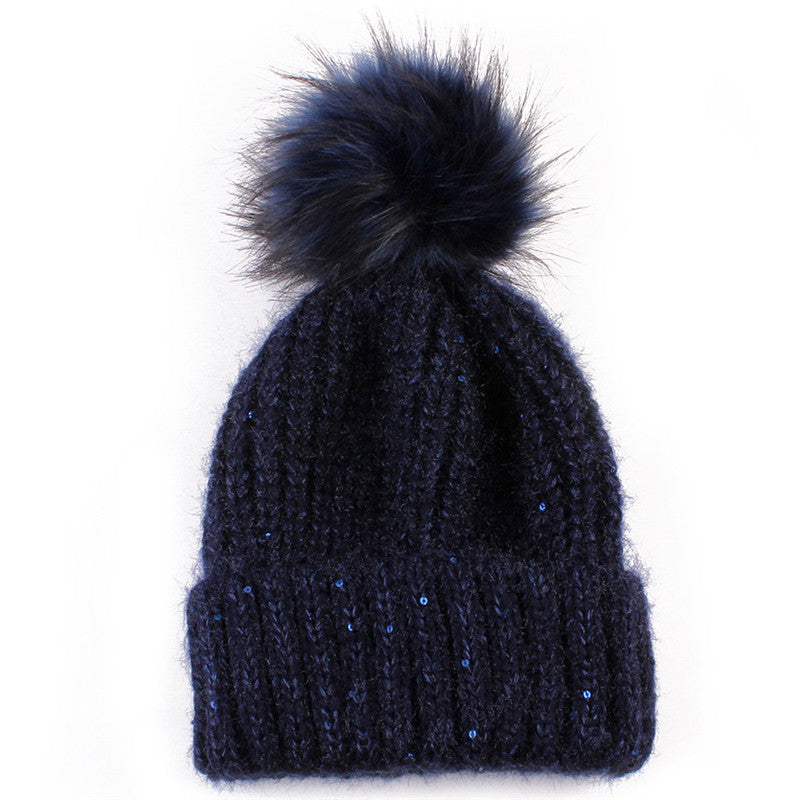 Cute Fur Ball Pompom Women Fashion Keep Warm Hats Knitted Wool Hemming Hat Beanies Accessories Fur Pom Cap EF8
