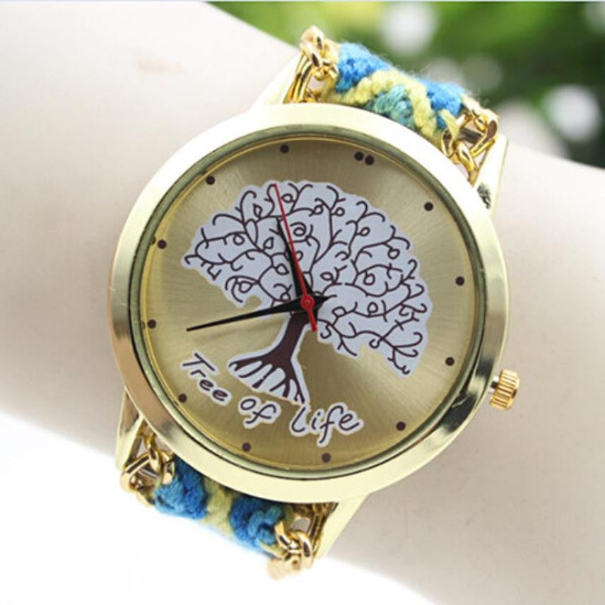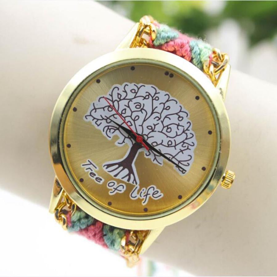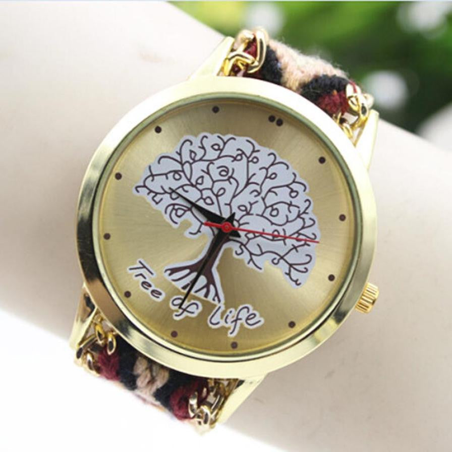 Fashion Ladies Women Tree Of Life Pattern Bracelet Watch Knitting Dial Quartz Watch EF8