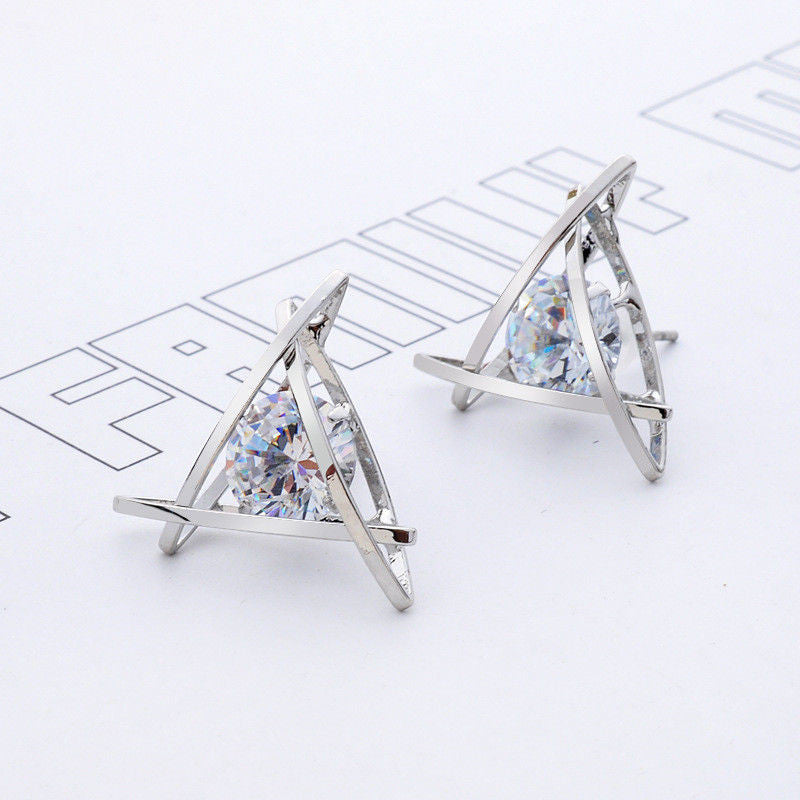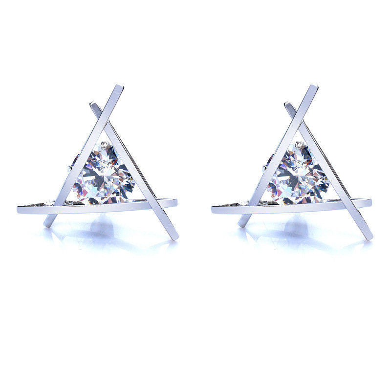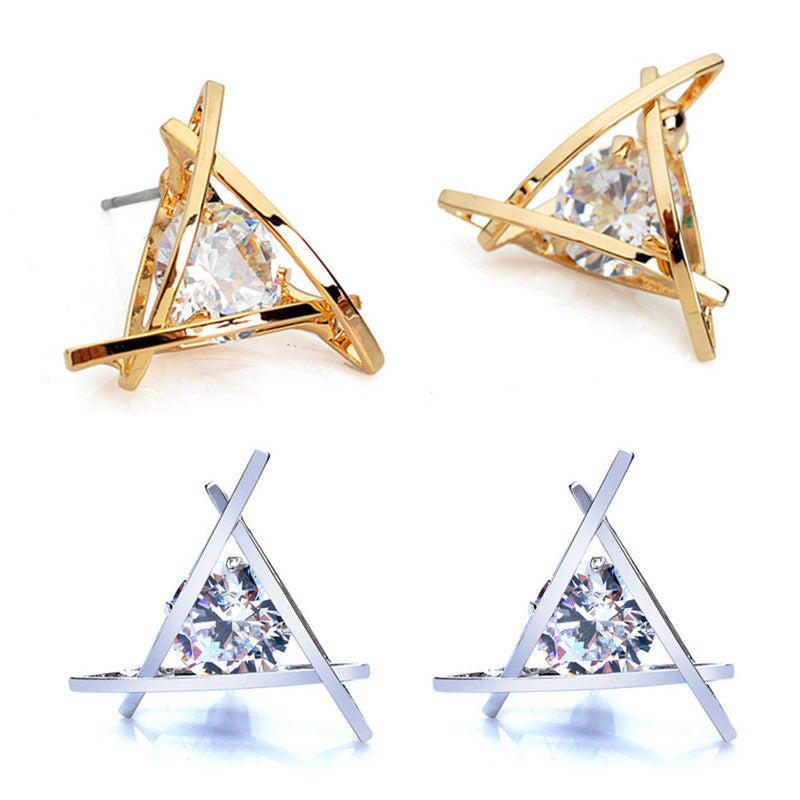 High-end Elegant Stud Earrings Sliver Gold Triangle Earrings For Women Jewelry Gifts EF8