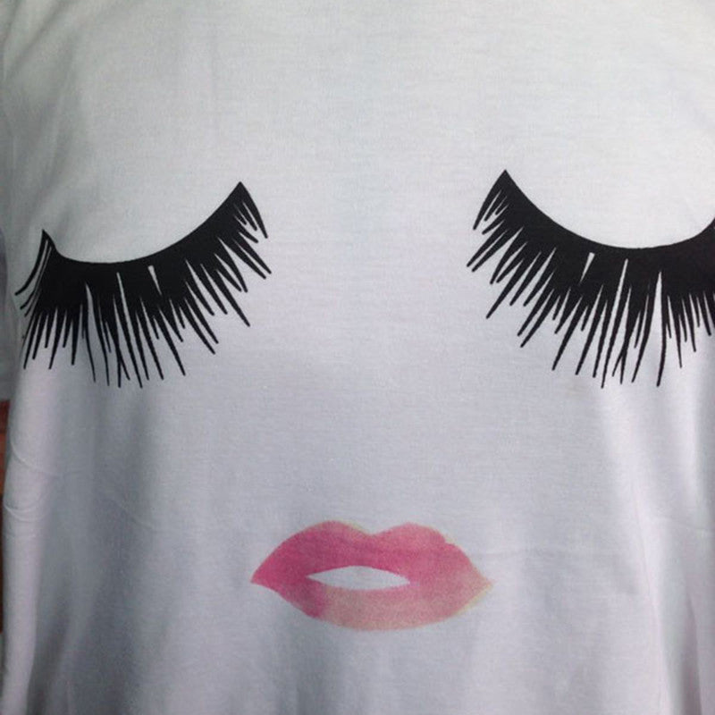 Style Harajuku T Shirt Women Eyelash Lips White Cotton Women T-Shirt Tops Tees Camisas Mujer Loose T Shirt Femme EF8