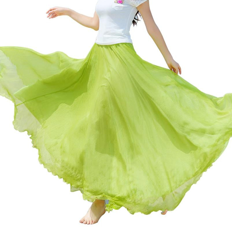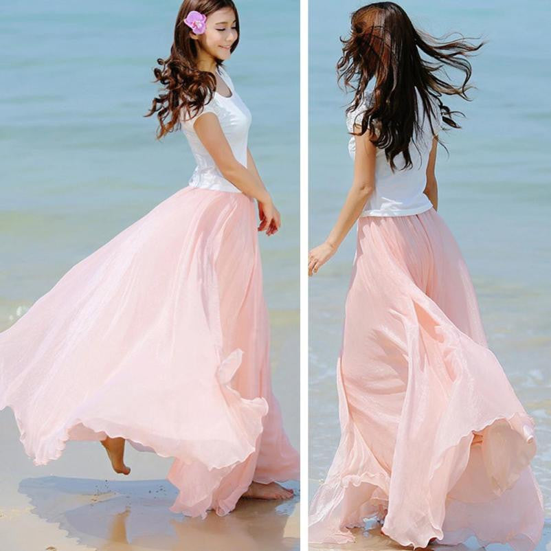Style Skirts Womens High Waist Pleated Long Skirt Ladies Casual Beach Maxi Skirts saia faldas 11 Colors EF8