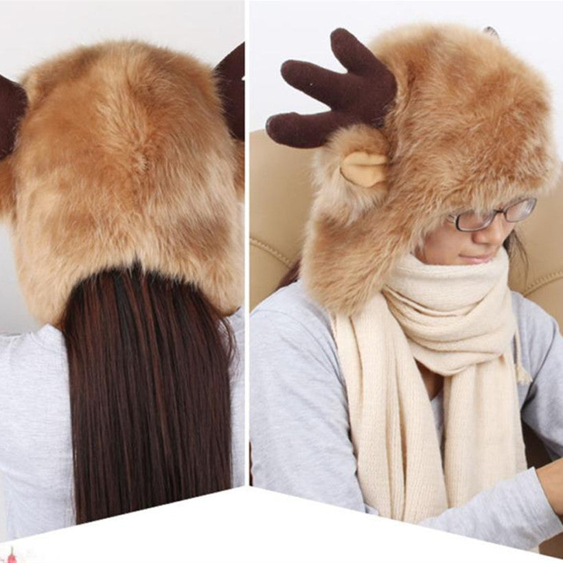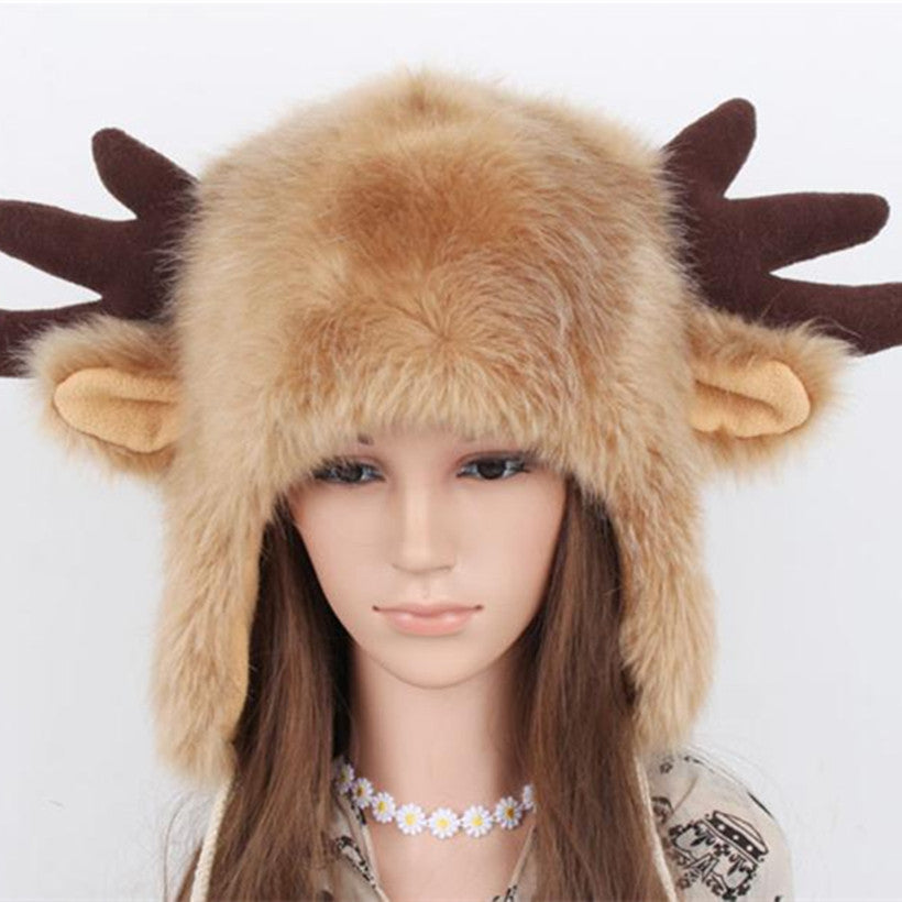 Women Ladies Fur Russian Pillbox Hat Women's Warm Hat Elk Horn EF8